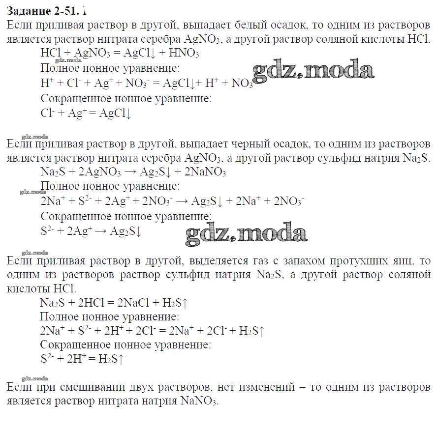ГДЗ решение к заданию № 2-51 Химия 9 класс задачник Кузнецова Н.Е. Вентана-граф 2015 ФГОС бесплатно на гдз.мода!
