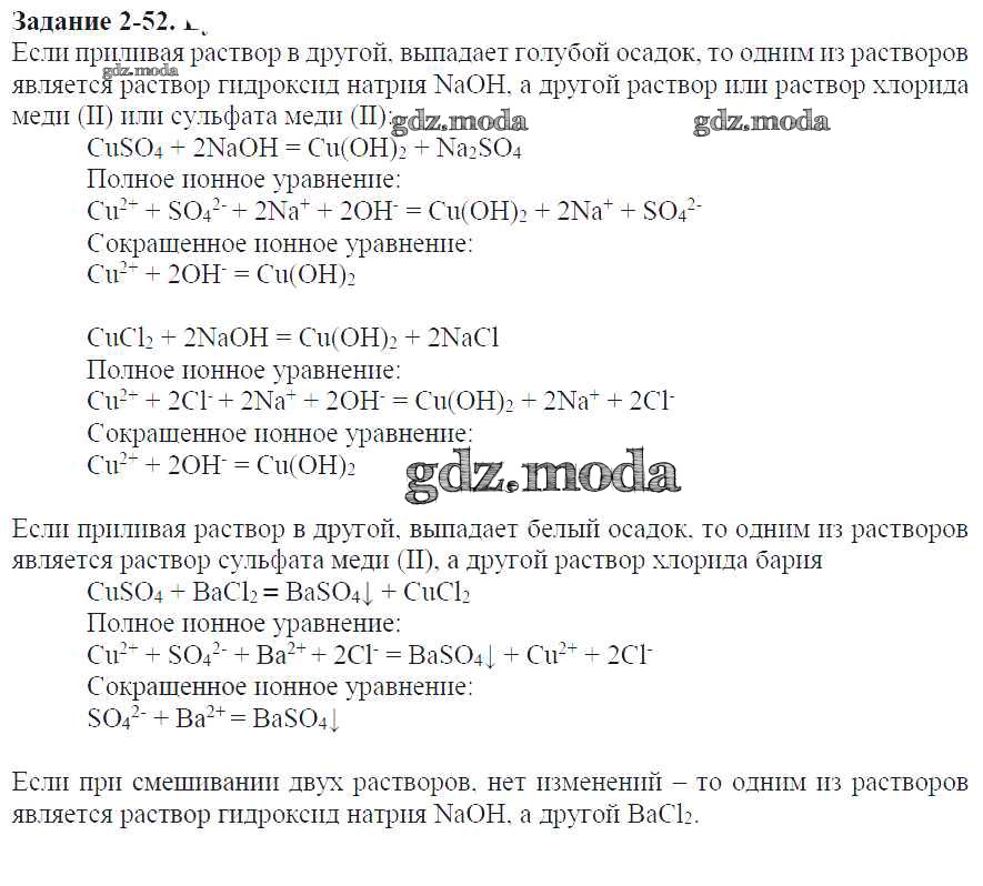 ГДЗ решение к заданию № 2-52 Химия 9 класс задачник Кузнецова Н.Е. Вентана-граф 2015 ФГОС бесплатно на гдз.мода!