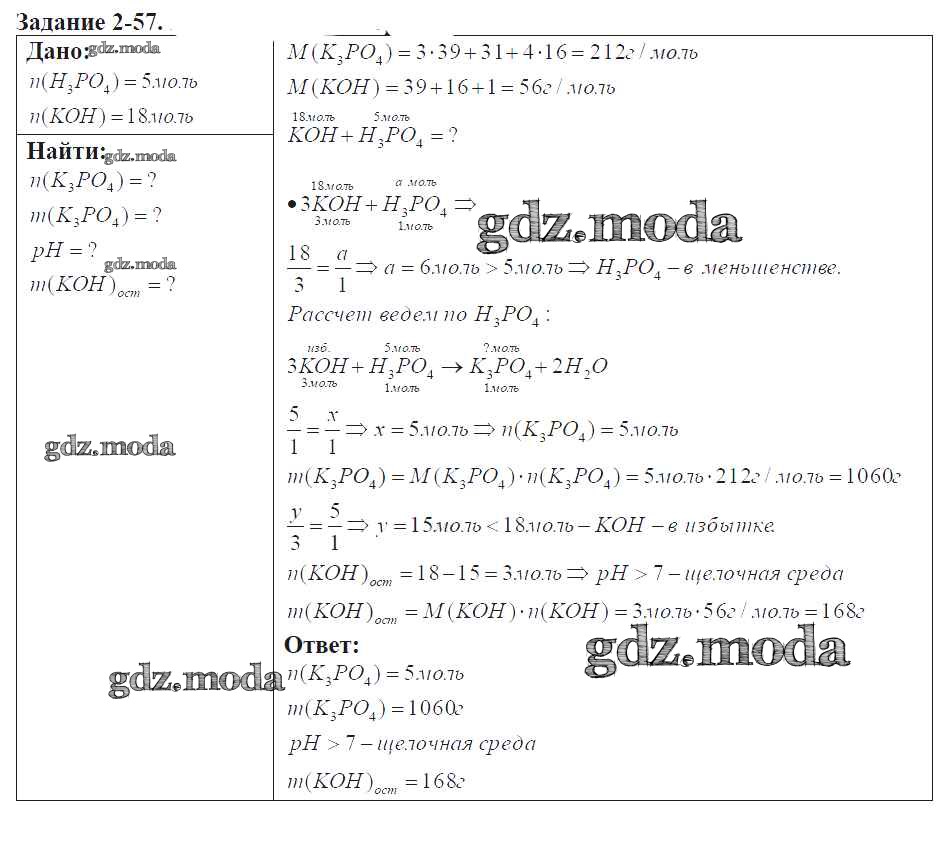 ГДЗ решение к заданию № 2-57 Химия 9 класс задачник Кузнецова Н.Е. Вентана-граф 2015 ФГОС бесплатно на гдз.мода!