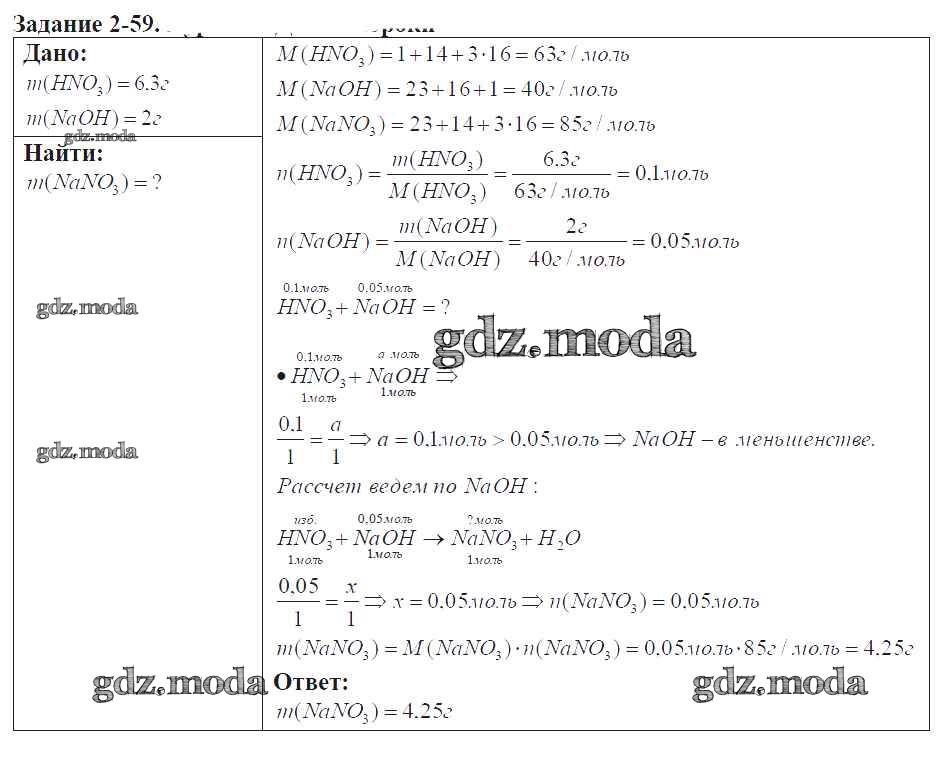 ГДЗ решение к заданию № 2-59 Химия 9 класс задачник Кузнецова Н.Е. Вентана-граф 2015 ФГОС бесплатно на гдз.мода!
