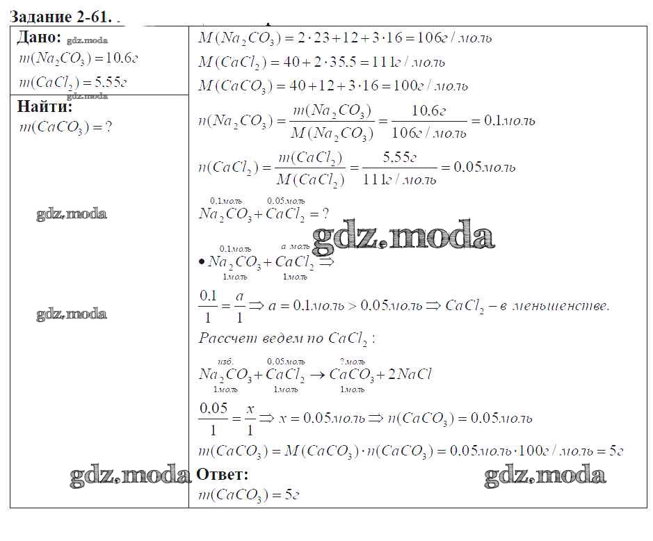 ГДЗ решение к заданию № 2-61 Химия 9 класс задачник Кузнецова Н.Е. Вентана-граф 2015 ФГОС бесплатно на гдз.мода!