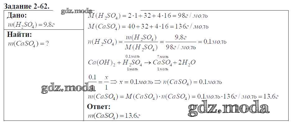 ГДЗ решение к заданию № 2-62 Химия 9 класс задачник Кузнецова Н.Е. Вентана-граф 2015 ФГОС бесплатно на гдз.мода!