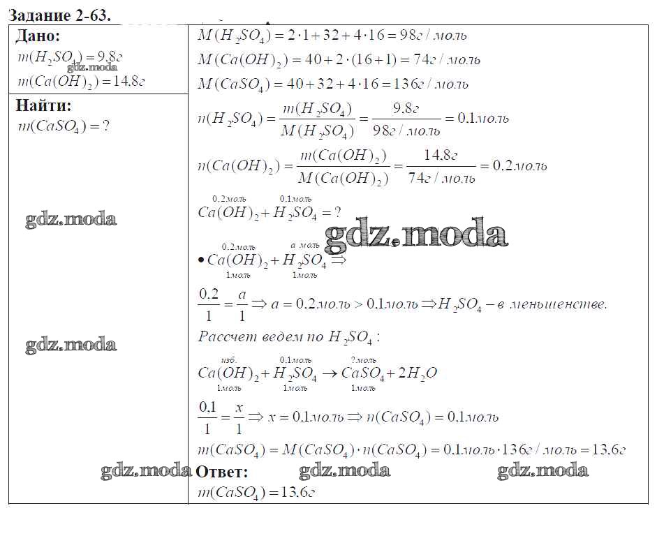 ГДЗ решение к заданию № 2-63 Химия 9 класс задачник Кузнецова Н.Е. Вентана-граф 2015 ФГОС бесплатно на гдз.мода!