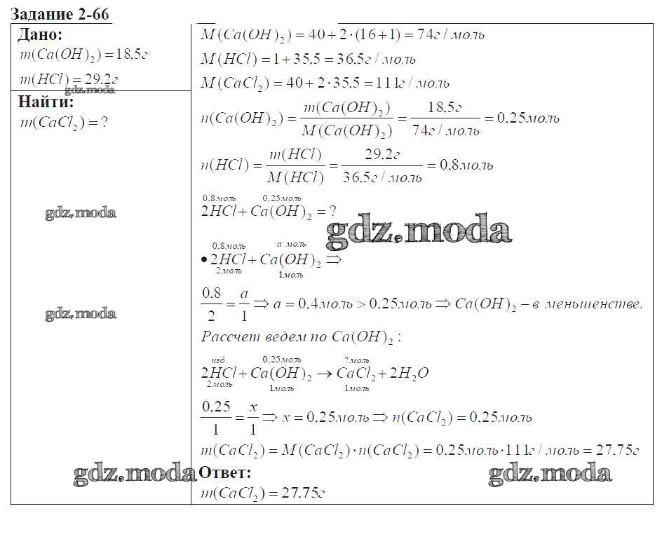 ГДЗ решение к заданию № 2-66 Химия 9 класс задачник Кузнецова Н.Е. Вентана-граф 2015 ФГОС бесплатно на гдз.мода!