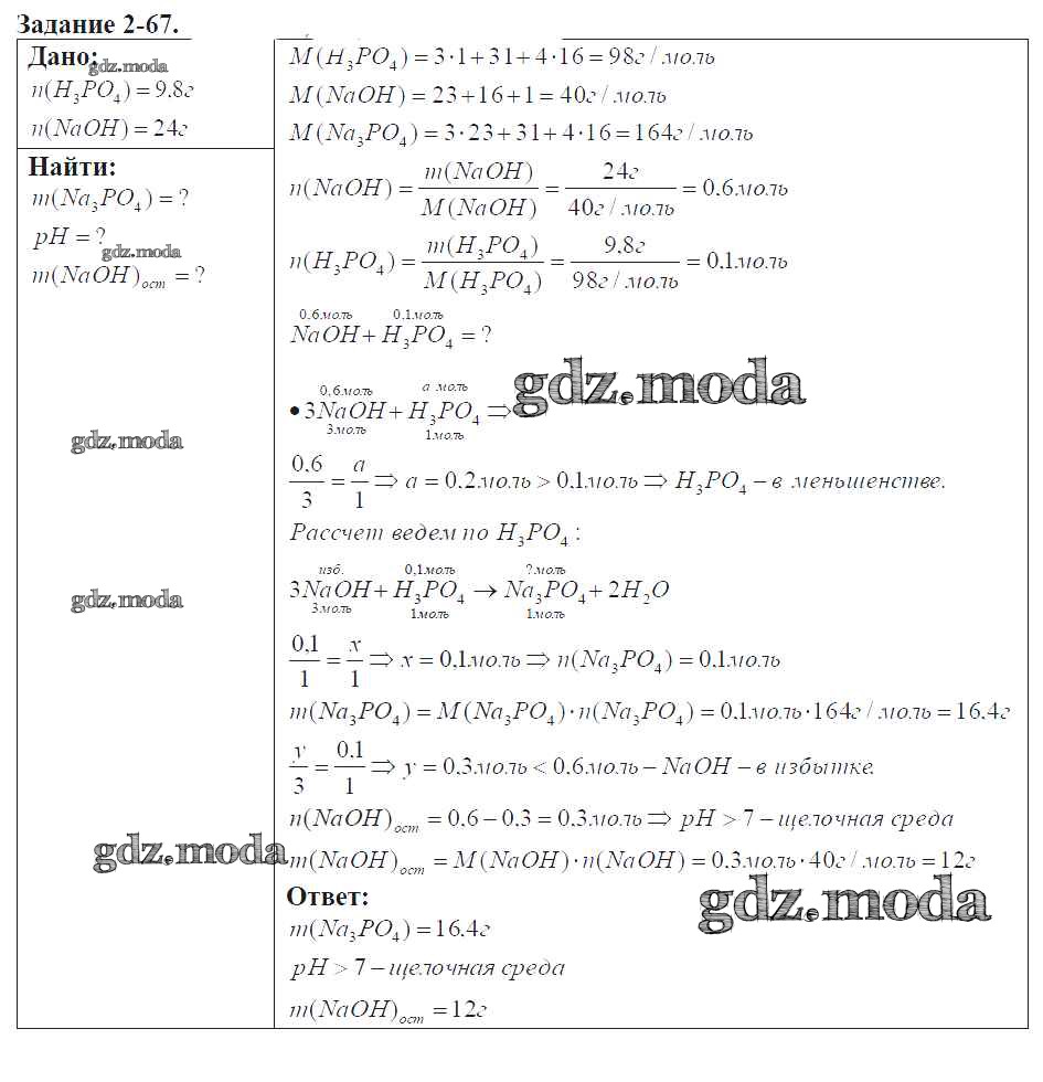 ОТВЕТ на задание № 2-67 Задачник по Химии 9 класс Кузнецова Алгоритм успеха