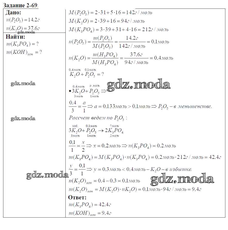 ОТВЕТ на задание № 2-69 Задачник по Химии 9 класс Кузнецова Алгоритм успеха