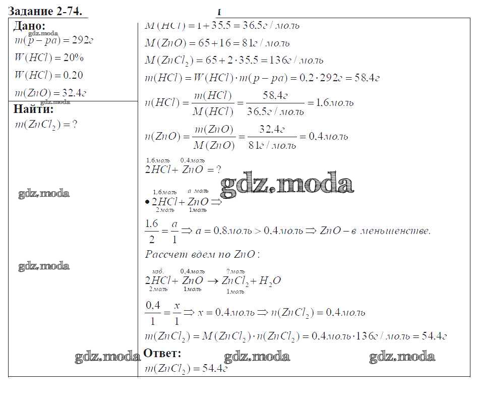 ГДЗ решение к заданию № 2-74 Химия 9 класс задачник Кузнецова Н.Е. Вентана-граф 2015 ФГОС бесплатно на гдз.мода!