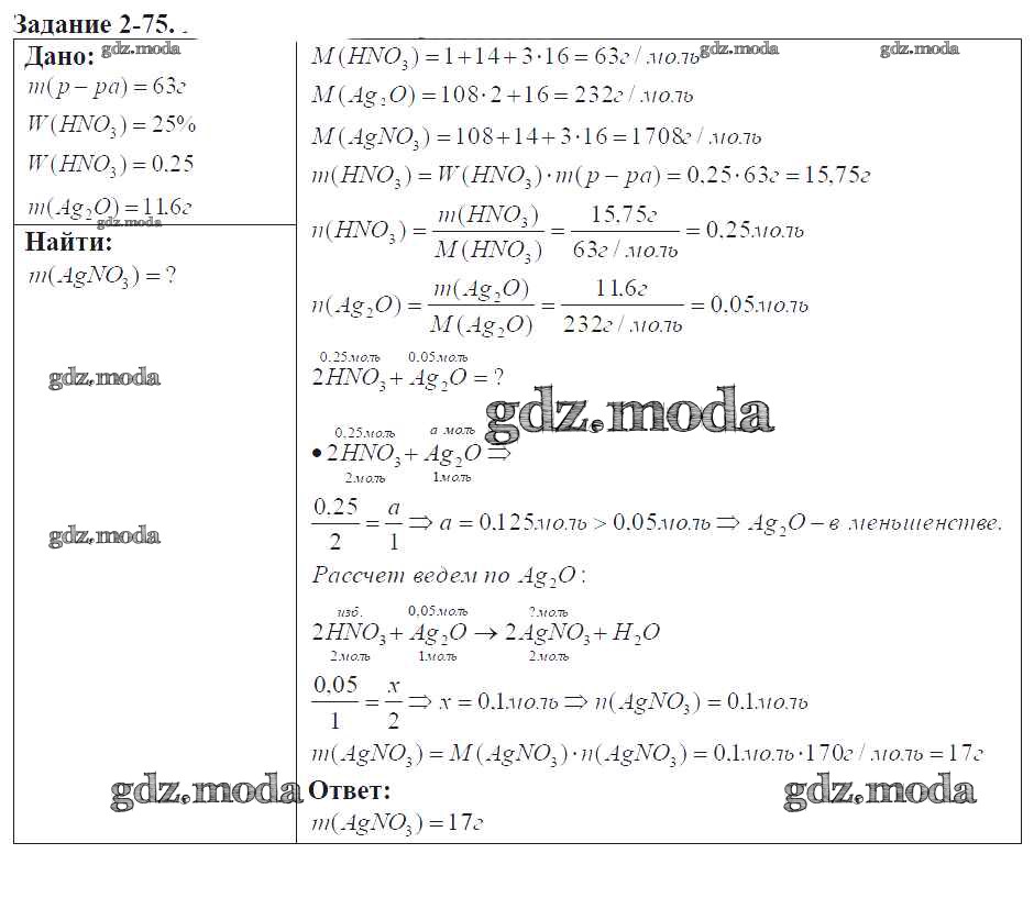 ГДЗ решение к заданию № 2-75 Химия 9 класс задачник Кузнецова Н.Е. Вентана-граф 2015 ФГОС бесплатно на гдз.мода!
