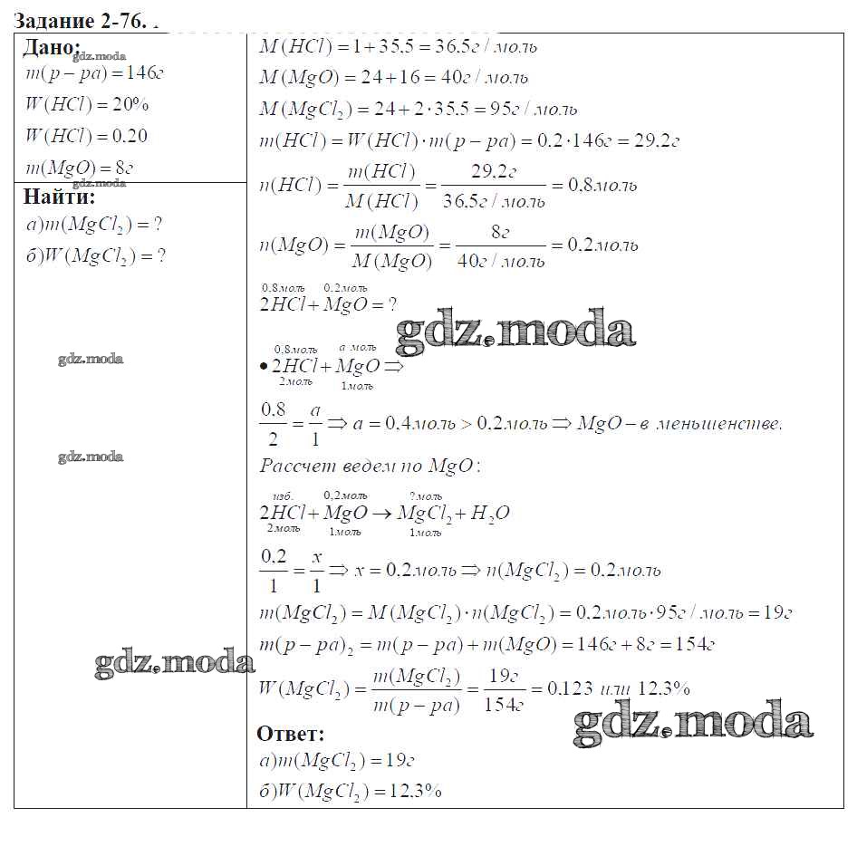 ГДЗ решение к заданию № 2-76 Химия 9 класс задачник Кузнецова Н.Е. Вентана-граф 2015 ФГОС бесплатно на гдз.мода!