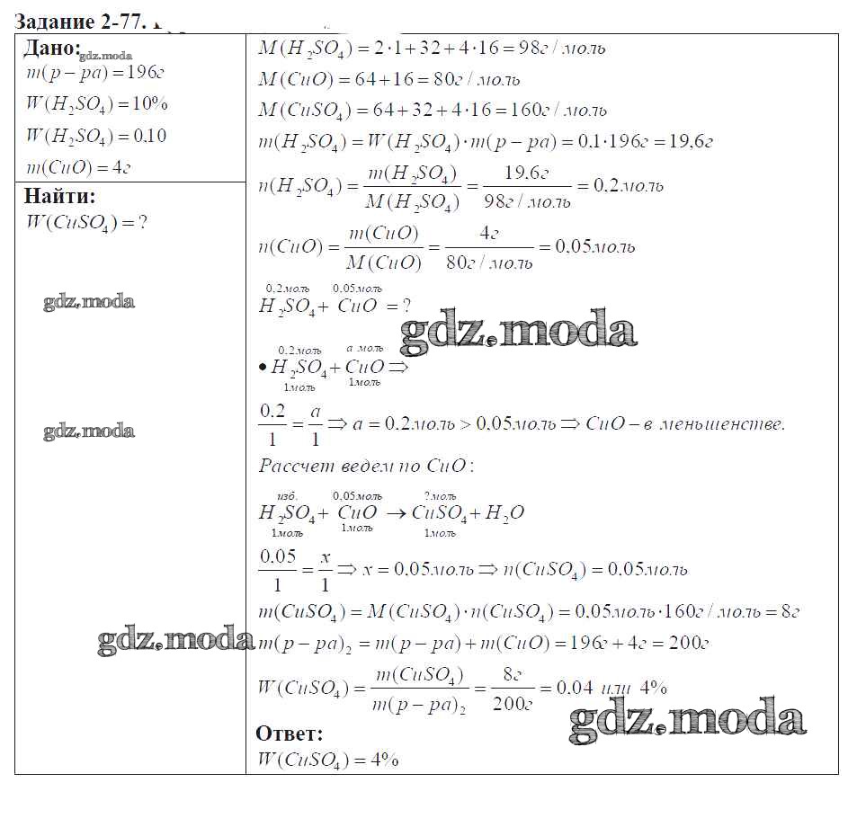 ГДЗ решение к заданию № 2-77 Химия 9 класс задачник Кузнецова Н.Е. Вентана-граф 2015 ФГОС бесплатно на гдз.мода!