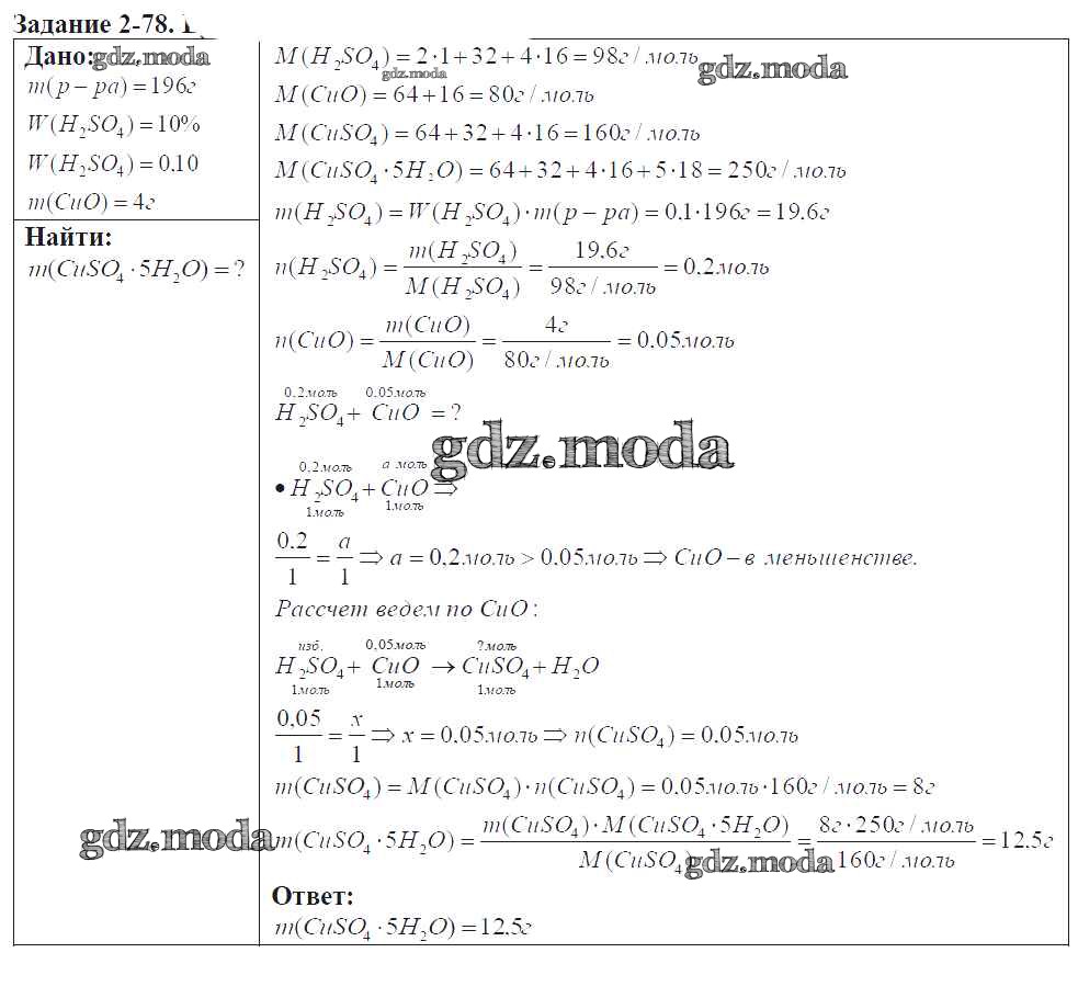 ГДЗ решение к заданию № 2-78 Химия 9 класс задачник Кузнецова Н.Е. Вентана-граф 2015 ФГОС бесплатно на гдз.мода!