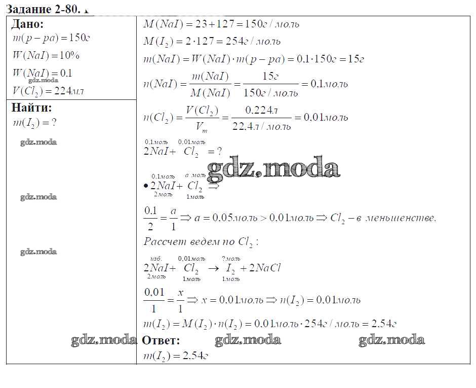 ОТВЕТ на задание № 2-80 Задачник по Химии 9 класс Кузнецова Алгоритм успеха