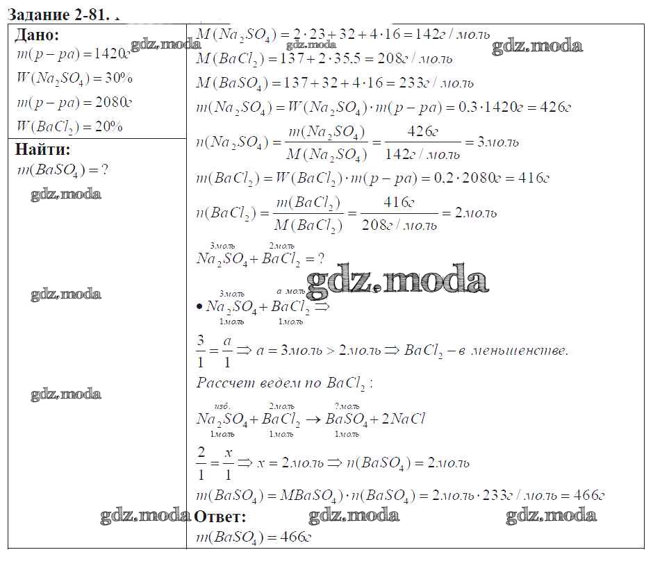 ГДЗ решение к заданию № 2-81 Химия 9 класс задачник Кузнецова Н.Е. Вентана-граф 2015 ФГОС бесплатно на гдз.мода!
