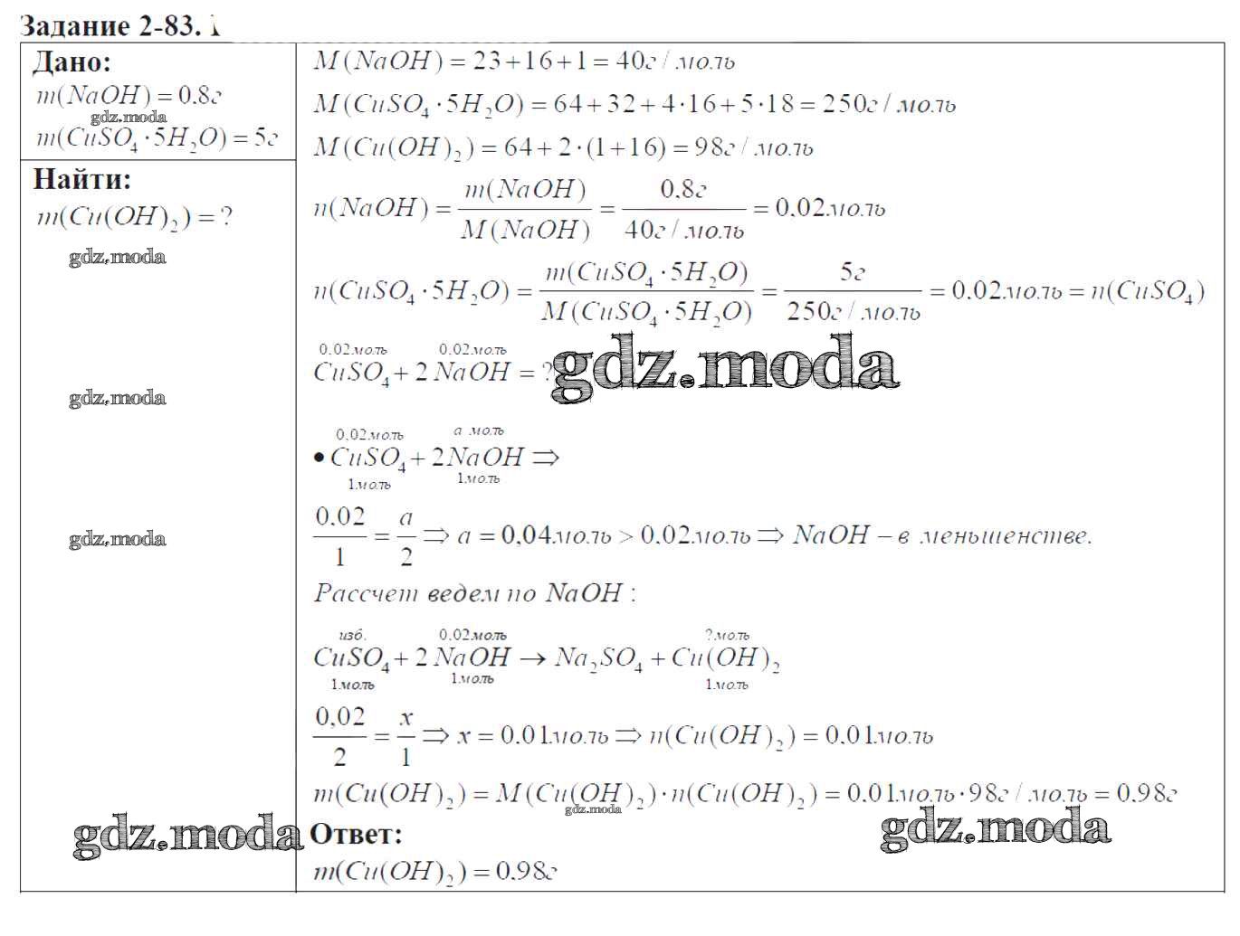 ГДЗ решение к заданию № 2-83 Химия 9 класс задачник Кузнецова Н.Е. Вентана-граф 2015 ФГОС бесплатно на гдз.мода!