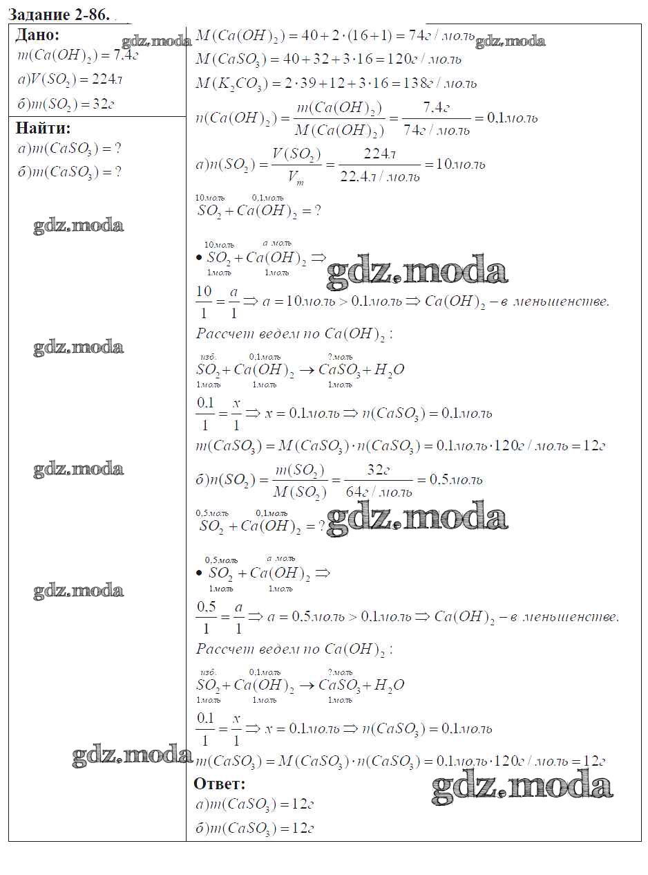 ГДЗ решение к заданию № 2-86 Химия 9 класс задачник Кузнецова Н.Е. Вентана-граф 2015 ФГОС бесплатно на гдз.мода!