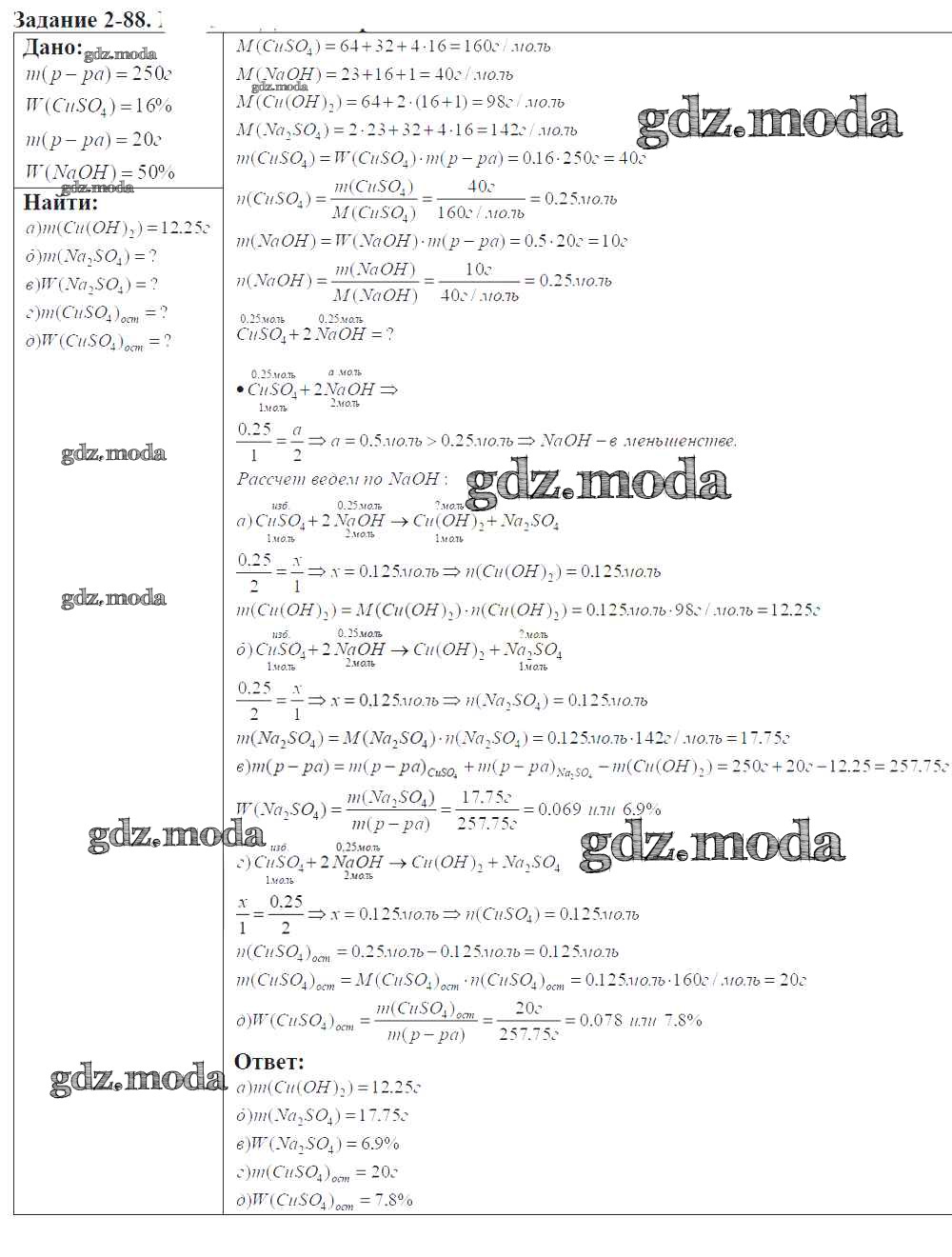 ГДЗ решение к заданию № 2-88 Химия 9 класс задачник Кузнецова Н.Е. Вентана-граф 2015 ФГОС бесплатно на гдз.мода!