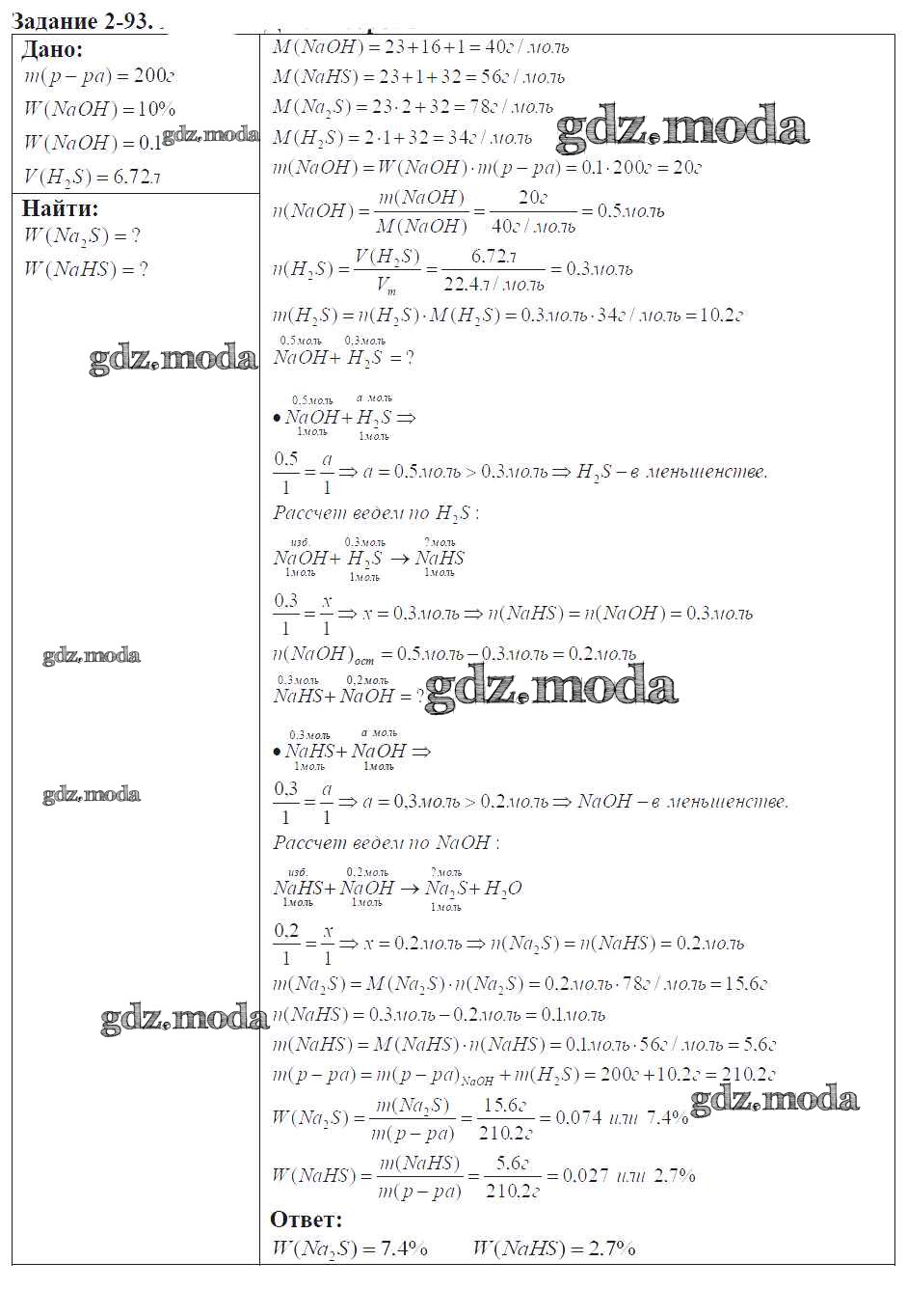 ГДЗ решение к заданию № 2-93 Химия 9 класс задачник Кузнецова Н.Е. Вентана-граф 2015 ФГОС бесплатно на гдз.мода!