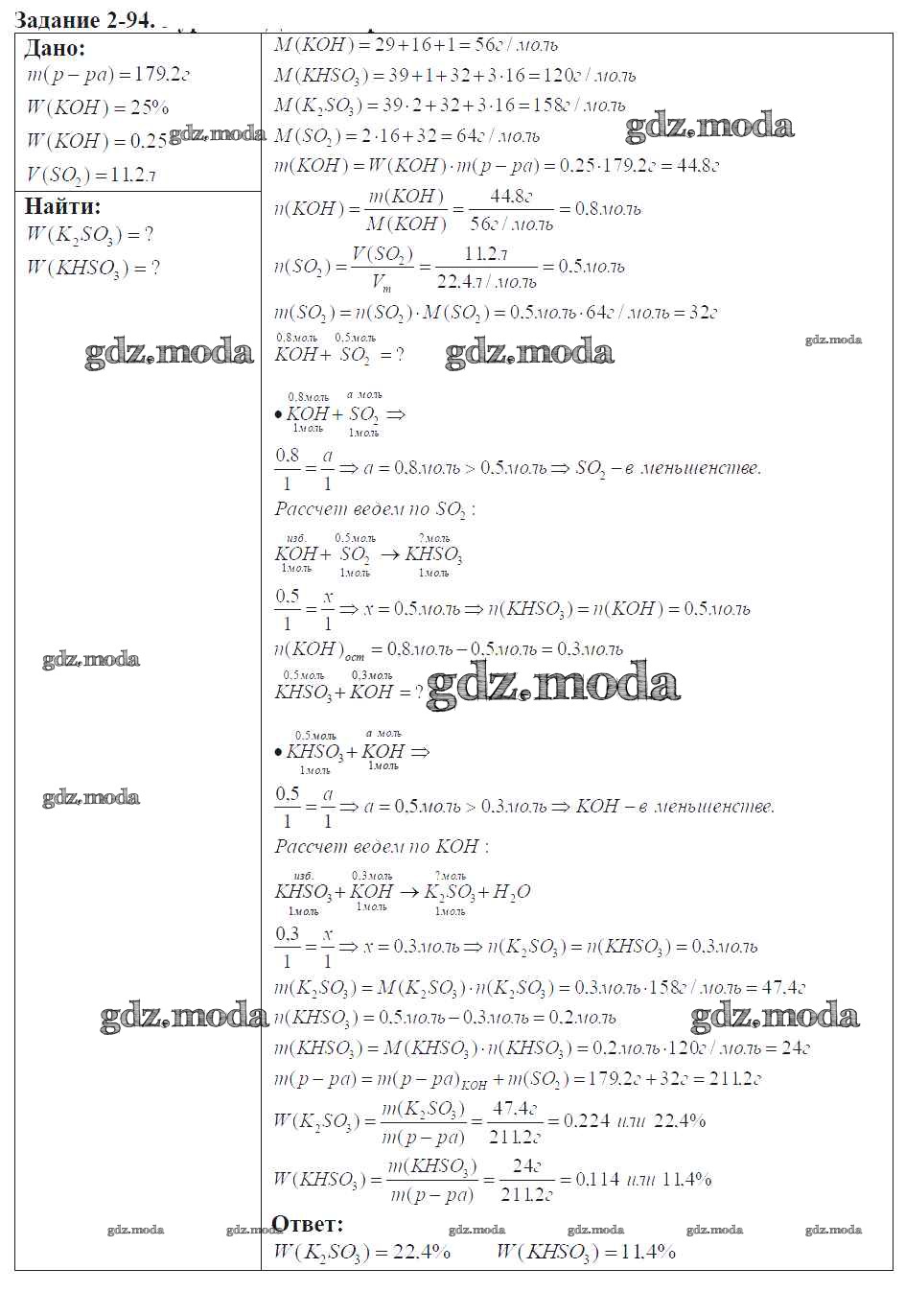 ГДЗ решение к заданию № 2-94 Химия 9 класс задачник Кузнецова Н.Е. Вентана-граф 2015 ФГОС бесплатно на гдз.мода!