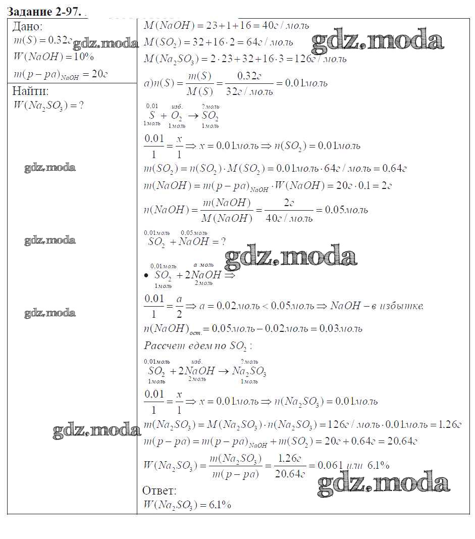 ГДЗ решение к заданию № 2-97 Химия 9 класс задачник Кузнецова Н.Е. Вентана-граф 2015 ФГОС бесплатно на гдз.мода!