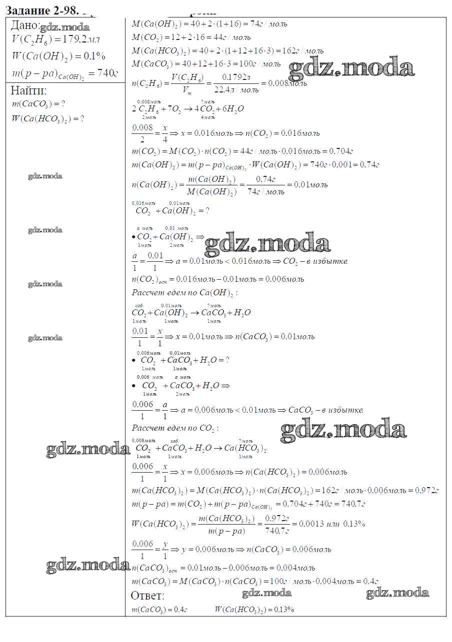ГДЗ решение к заданию № 2-98 Химия 9 класс задачник Кузнецова Н.Е. Вентана-граф 2015 ФГОС бесплатно на гдз.мода!