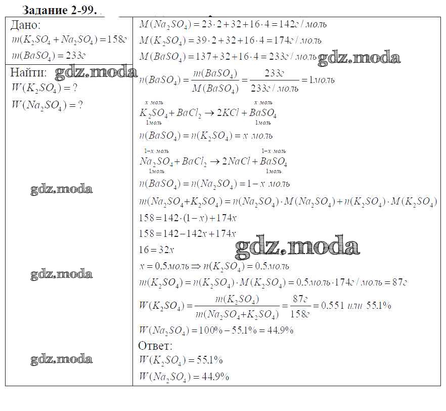 ГДЗ решение к заданию № 2-99 Химия 9 класс задачник Кузнецова Н.Е. Вентана-граф 2015 ФГОС бесплатно на гдз.мода!