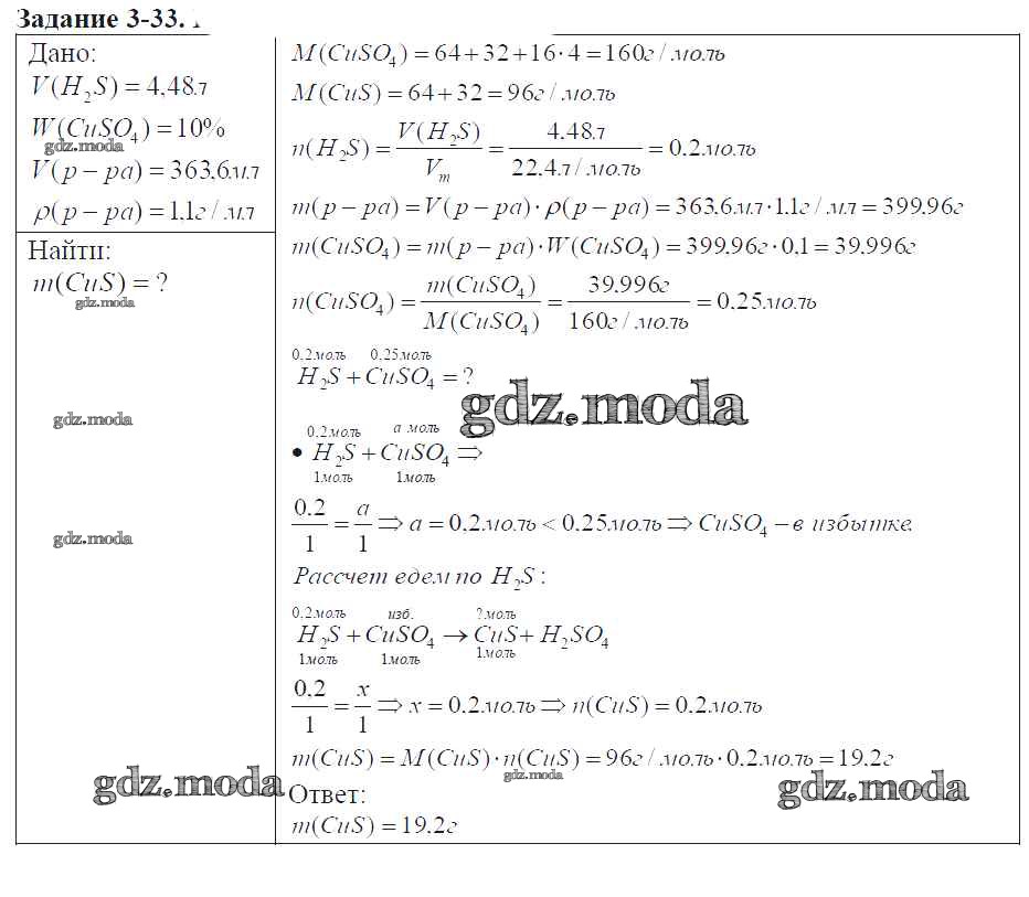 ГДЗ решение к заданию № 3-33 Химия 9 класс задачник Кузнецова Н.Е. Вентана-граф 2015 ФГОС бесплатно на гдз.мода!