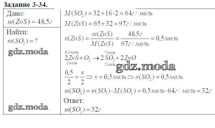 ГДЗ решение к заданию № 3-34 Химия 9 класс задачник Кузнецова Н.Е. Вентана-граф 2015 ФГОС бесплатно на гдз.мода!