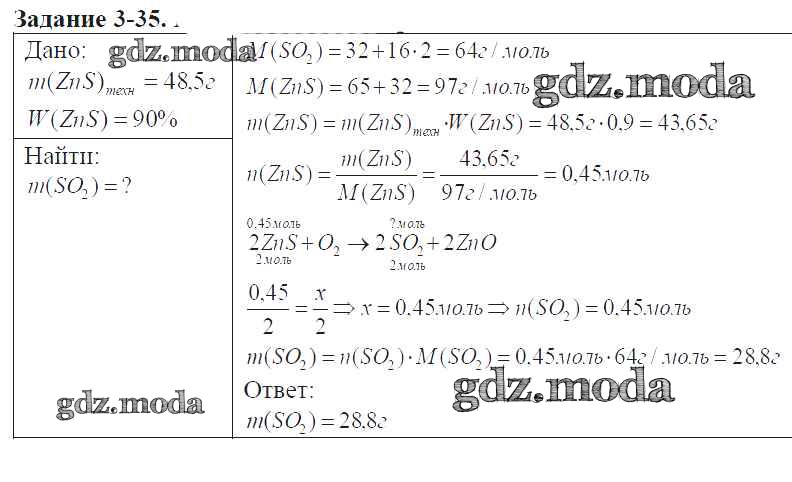 ГДЗ решение к заданию № 3-35 Химия 9 класс задачник Кузнецова Н.Е. Вентана-граф 2015 ФГОС бесплатно на гдз.мода!
