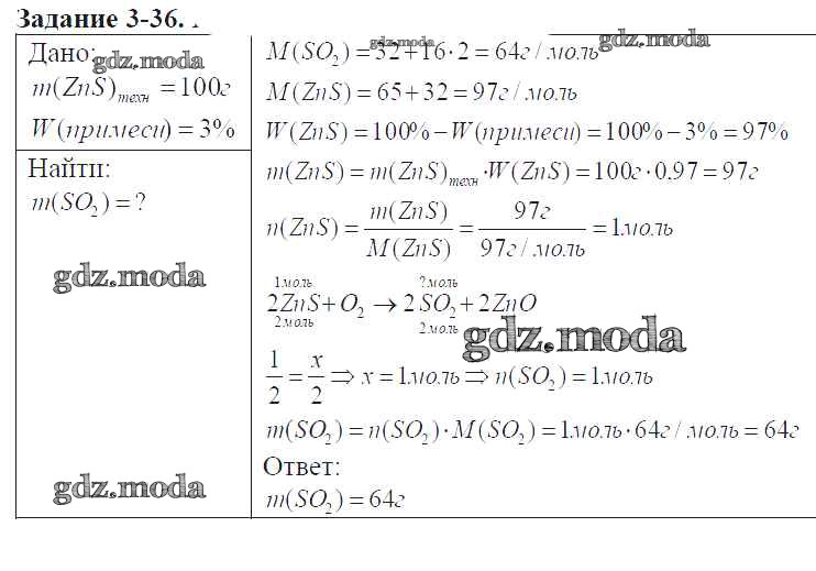 ГДЗ решение к заданию № 3-36 Химия 9 класс задачник Кузнецова Н.Е. Вентана-граф 2015 ФГОС бесплатно на гдз.мода!