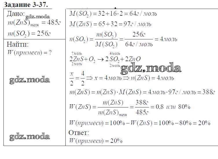 ГДЗ решение к заданию № 3-37 Химия 9 класс задачник Кузнецова Н.Е. Вентана-граф 2015 ФГОС бесплатно на гдз.мода!