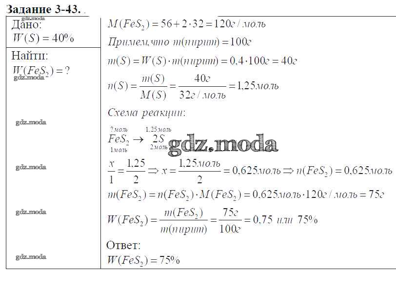 ГДЗ решение к заданию № 3-43 Химия 9 класс задачник Кузнецова Н.Е. Вентана-граф 2015 ФГОС бесплатно на гдз.мода!