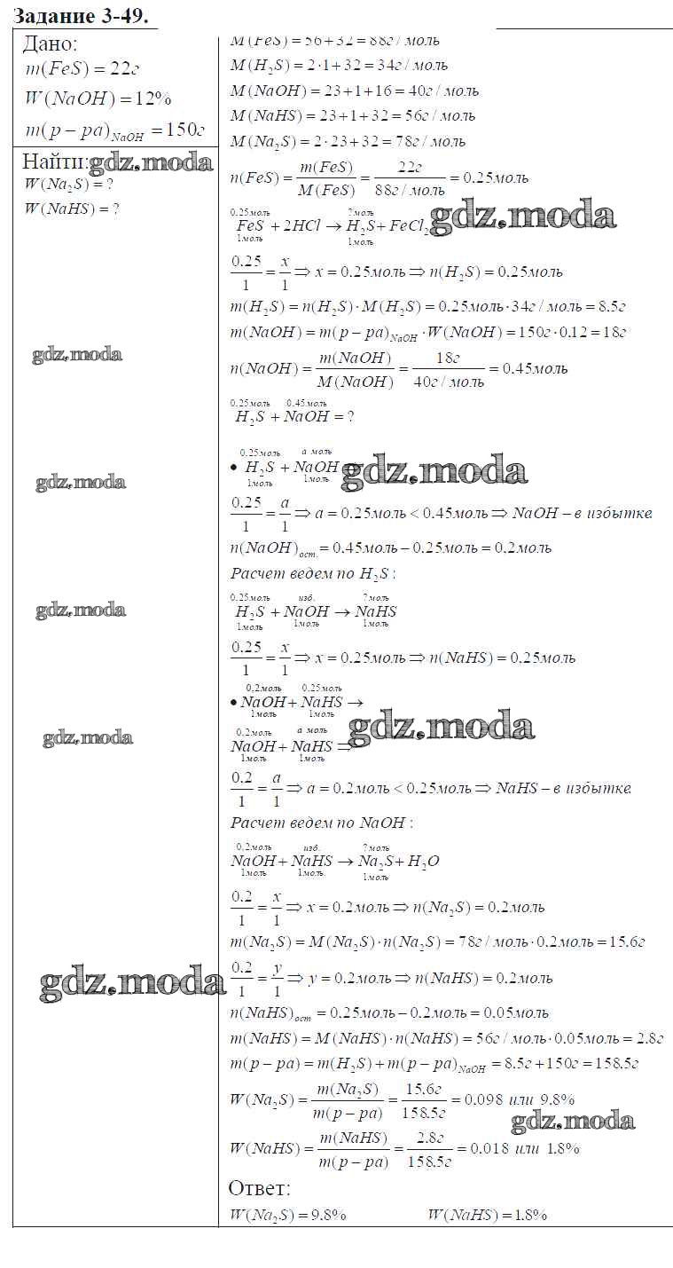 ГДЗ решение к заданию № 3-49 Химия 9 класс задачник Кузнецова Н.Е. Вентана-граф 2015 ФГОС бесплатно на гдз.мода!