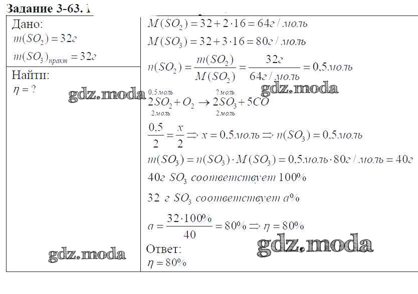 ГДЗ решение к заданию № 3-63 Химия 9 класс задачник Кузнецова Н.Е. Вентана-граф 2015 ФГОС бесплатно на гдз.мода!