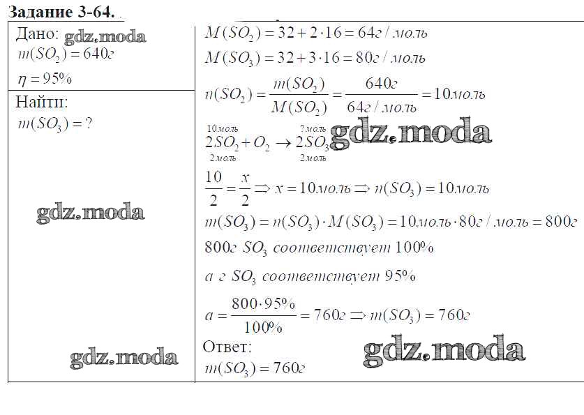 ГДЗ решение к заданию № 3-64 Химия 9 класс задачник Кузнецова Н.Е. Вентана-граф 2015 ФГОС бесплатно на гдз.мода!