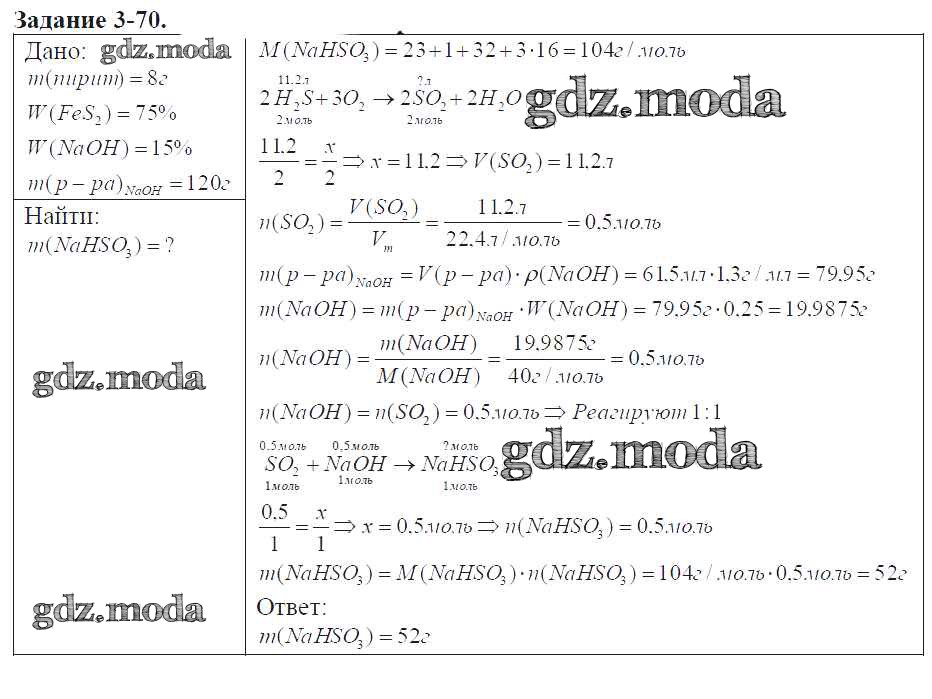 ГДЗ решение к заданию № 3-70 Химия 9 класс задачник Кузнецова Н.Е. Вентана-граф 2015 ФГОС бесплатно на гдз.мода!