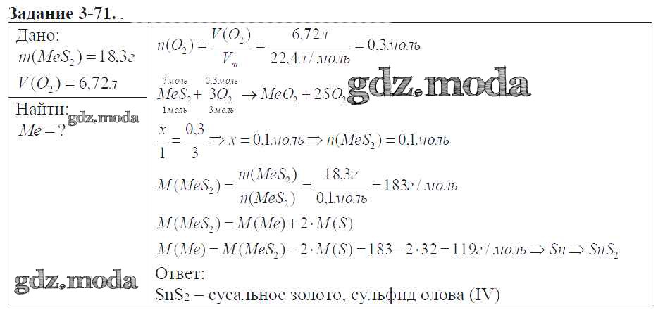 ГДЗ решение к заданию № 3-71 Химия 9 класс задачник Кузнецова Н.Е. Вентана-граф 2015 ФГОС бесплатно на гдз.мода!
