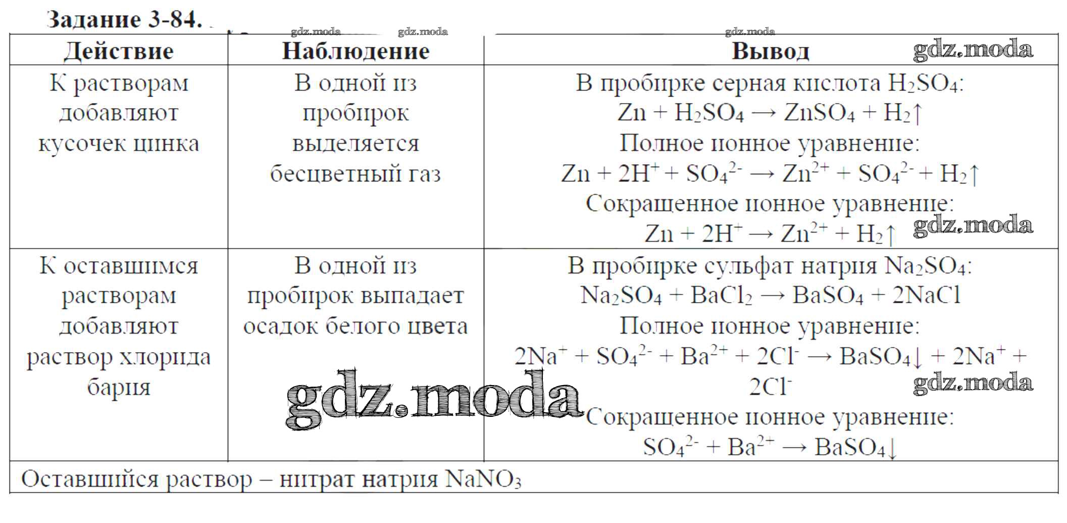 ГДЗ решение к заданию № 3-84 Химия 9 класс задачник Кузнецова Н.Е. Вентана-граф 2015 ФГОС бесплатно на гдз.мода!