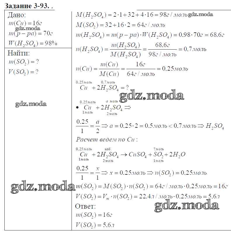 ГДЗ решение к заданию № 3-93 Химия 9 класс задачник Кузнецова Н.Е. Вентана-граф 2015 ФГОС бесплатно на гдз.мода!