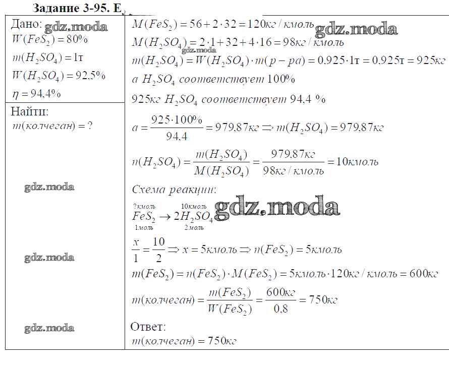ГДЗ решение к заданию № 3-95 Химия 9 класс задачник Кузнецова Н.Е. Вентана-граф 2015 ФГОС бесплатно на гдз.мода!