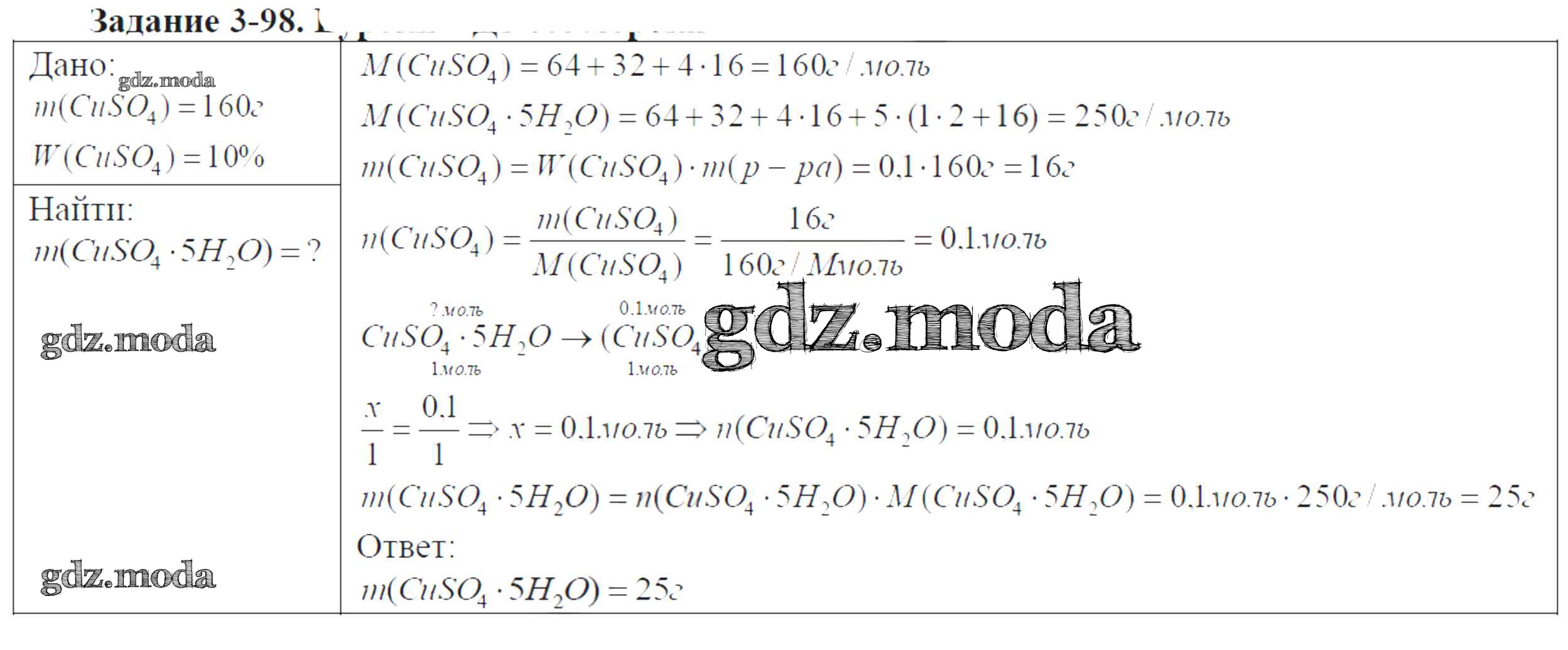 ГДЗ решение к заданию № 3-98 Химия 9 класс задачник Кузнецова Н.Е. Вентана-граф 2015 ФГОС бесплатно на гдз.мода!