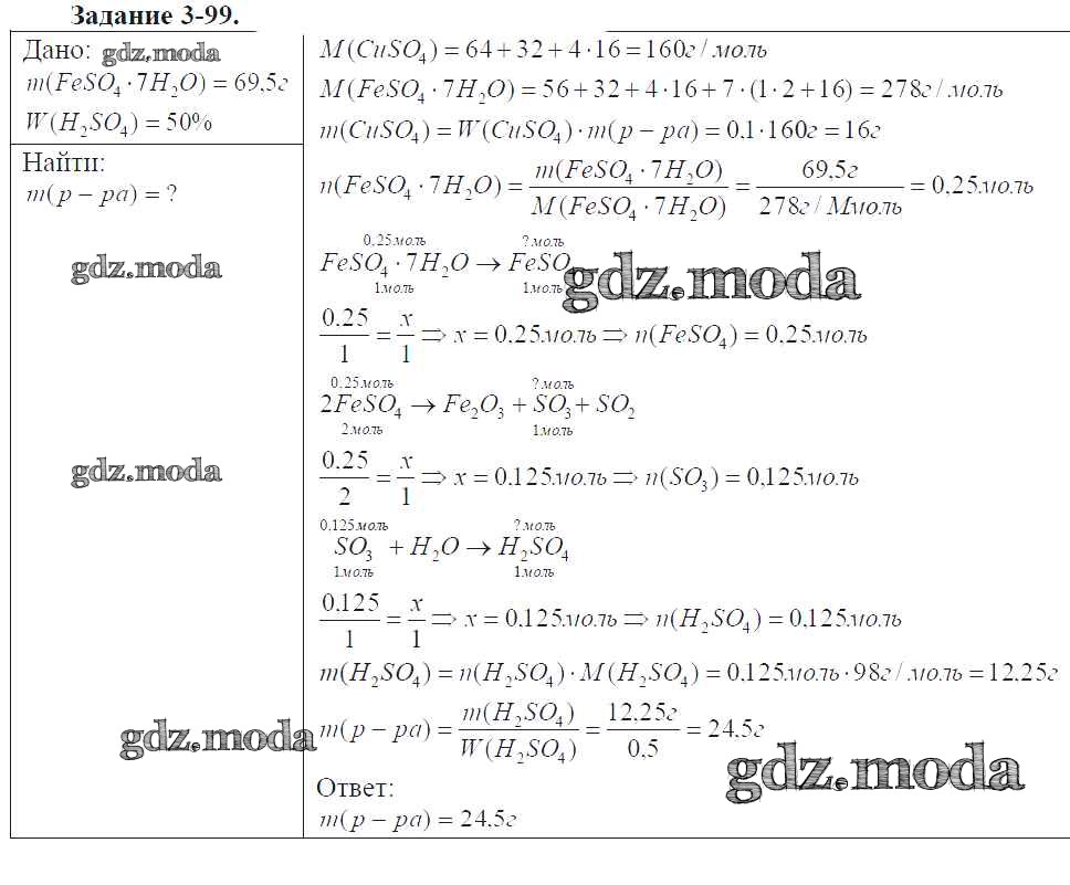 ГДЗ решение к заданию № 3-99 Химия 9 класс задачник Кузнецова Н.Е. Вентана-граф 2015 ФГОС бесплатно на гдз.мода!