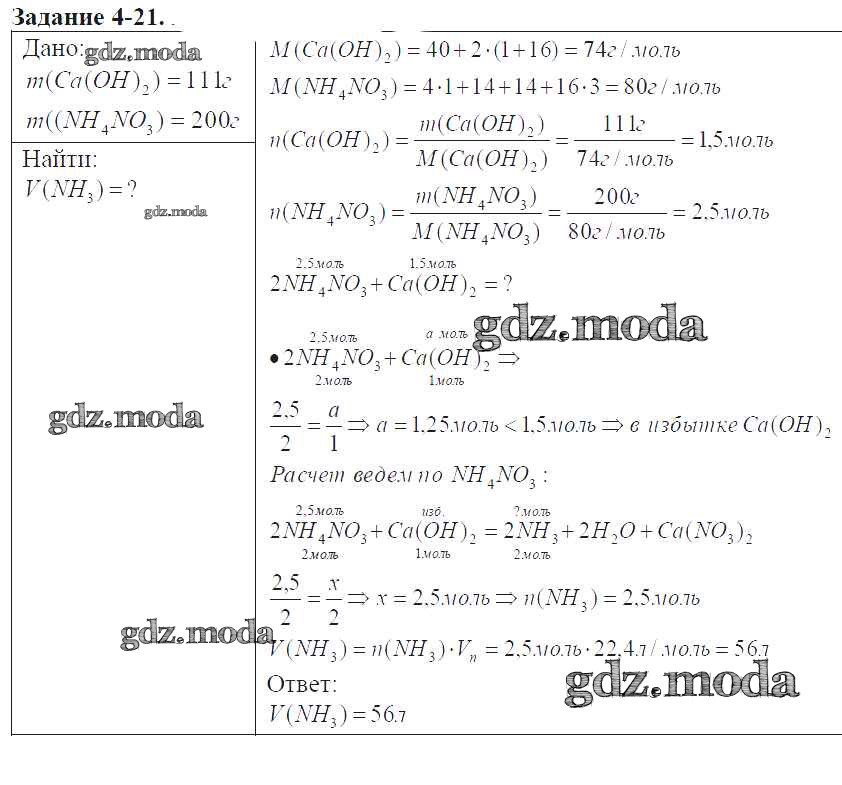 ГДЗ решение к заданию № 4-21 Химия 9 класс задачник Кузнецова Н.Е. Вентана-граф 2015 ФГОС бесплатно на гдз.мода!