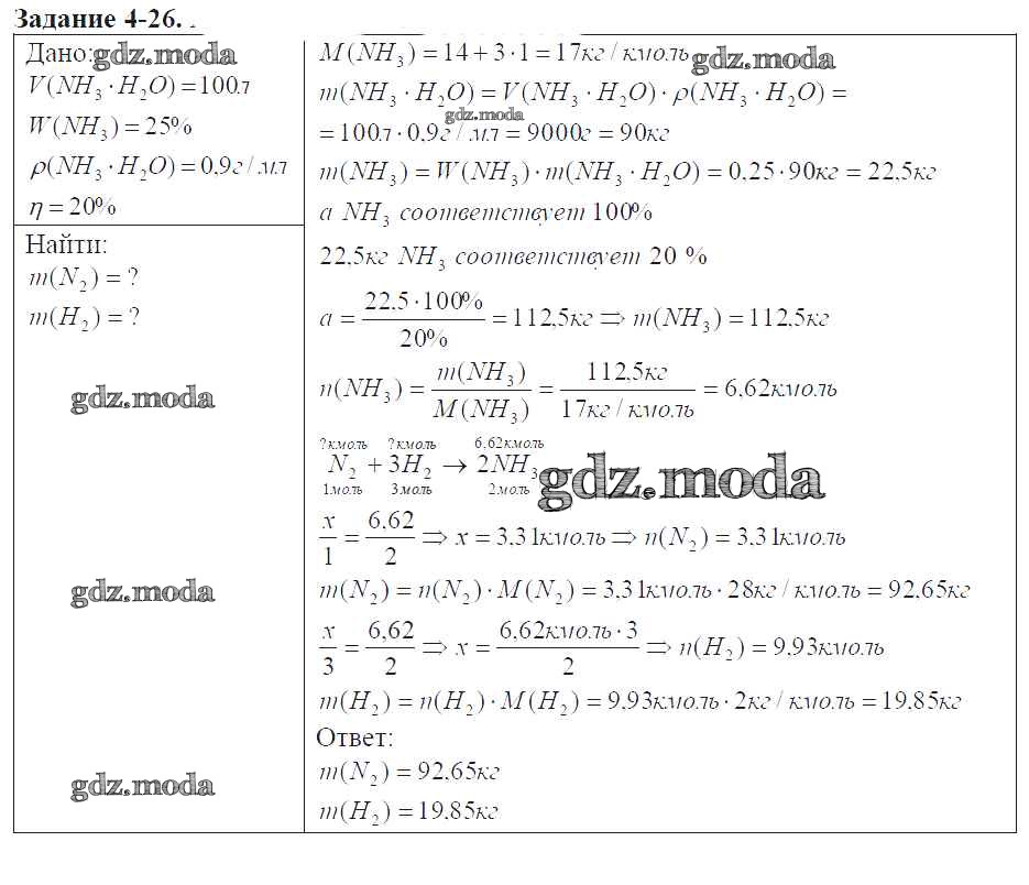 ГДЗ решение к заданию № 4-26 Химия 9 класс задачник Кузнецова Н.Е. Вентана-граф 2015 ФГОС бесплатно на гдз.мода!