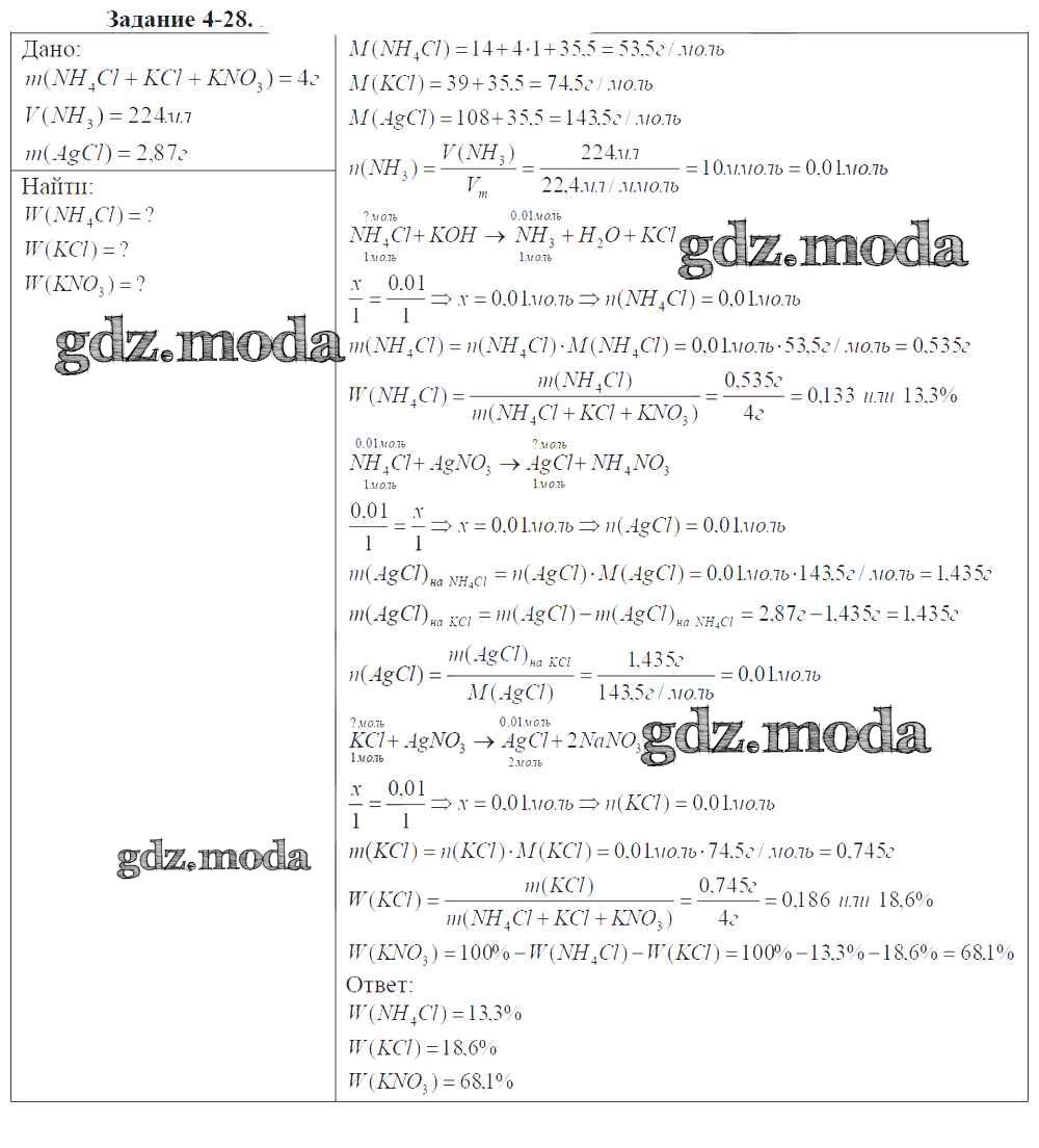 ОТВЕТ на задание № 4-28 Задачник по Химии 9 класс Кузнецова Алгоритм успеха