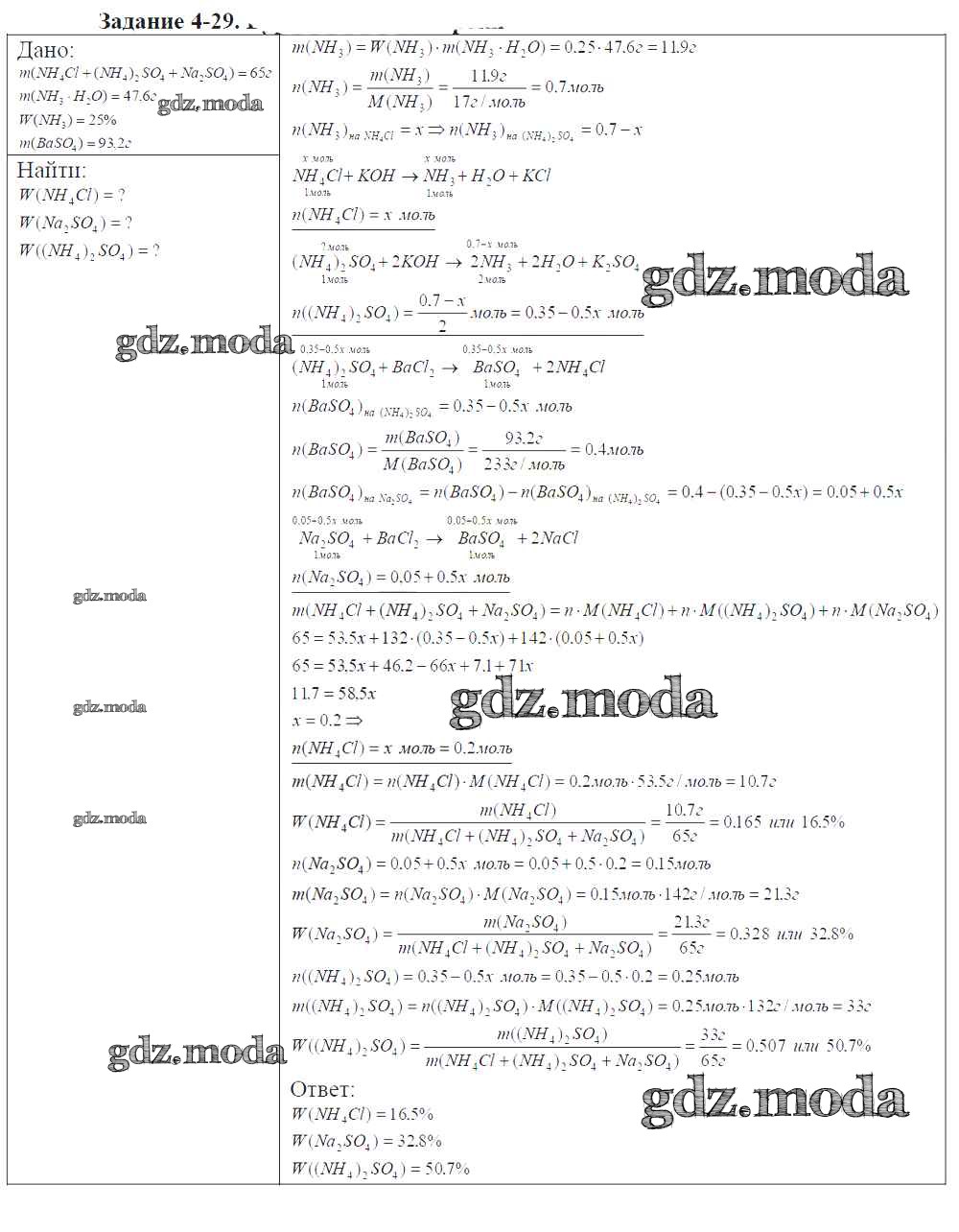 ГДЗ решение к заданию № 4-29 Химия 9 класс задачник Кузнецова Н.Е. Вентана-граф 2015 ФГОС бесплатно на гдз.мода!