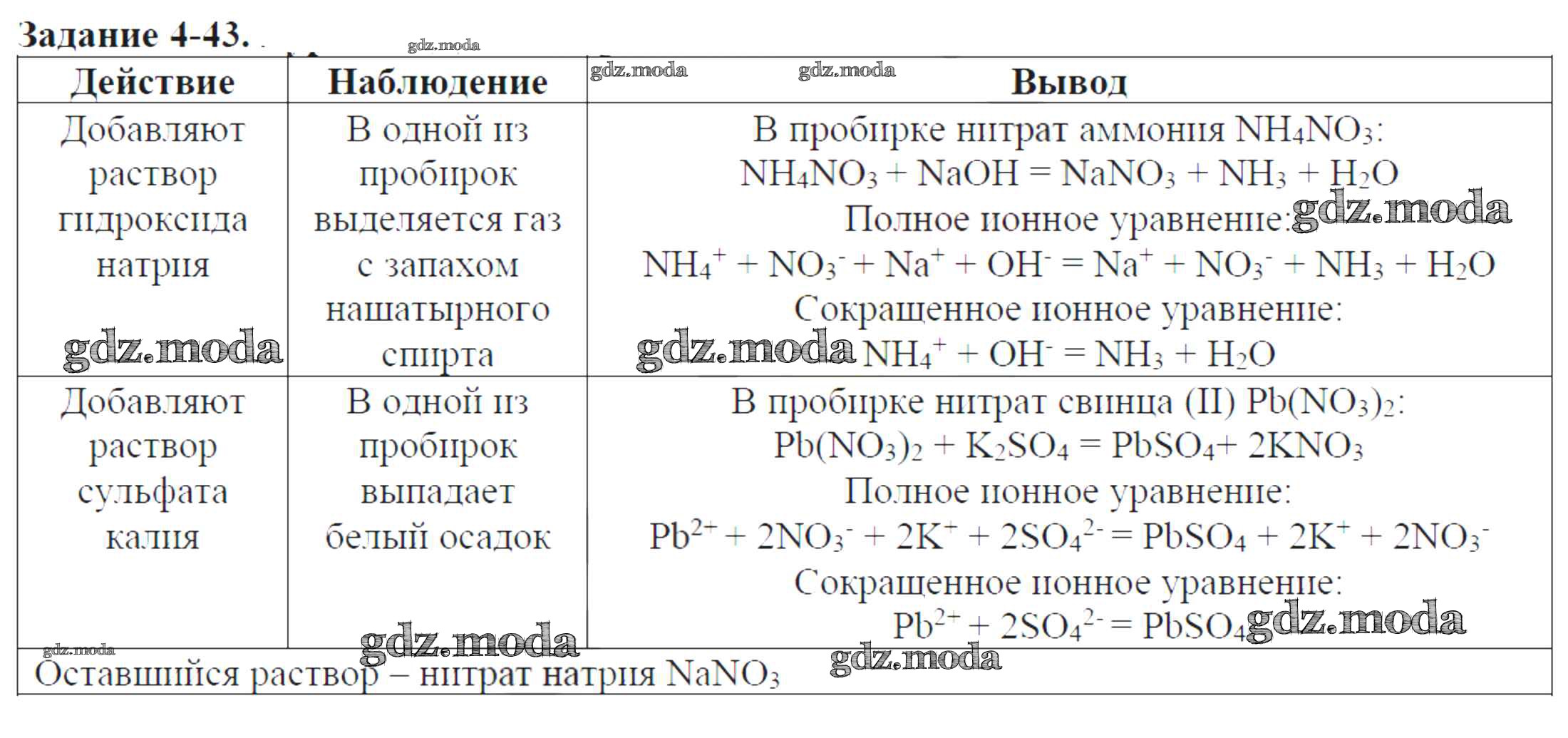ГДЗ решение к заданию № 4-43 Химия 9 класс задачник Кузнецова Н.Е. Вентана-граф 2015 ФГОС бесплатно на гдз.мода!
