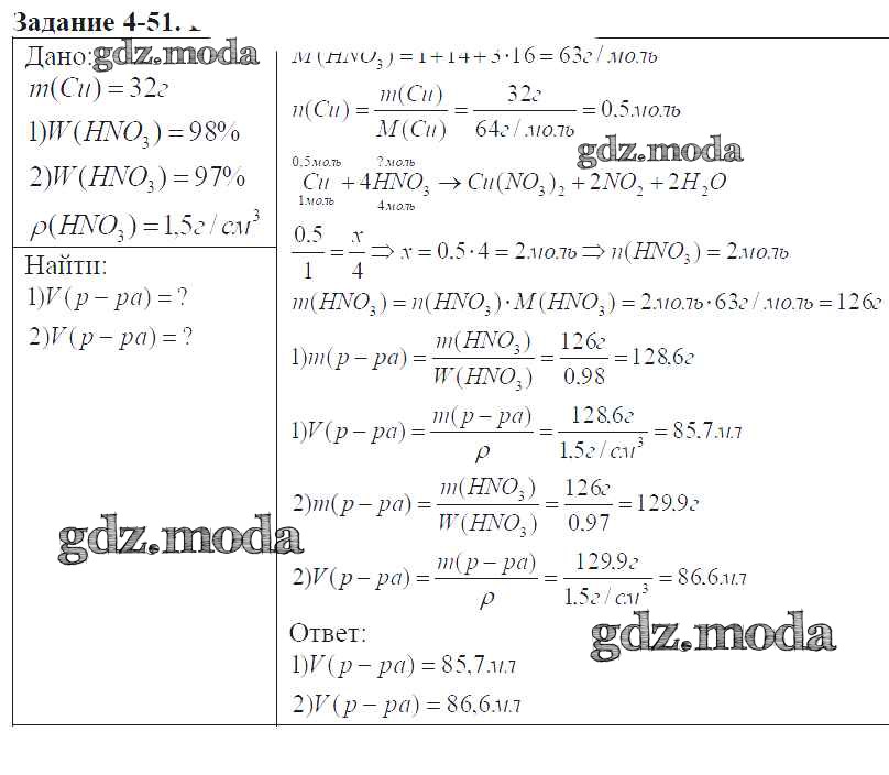 ГДЗ решение к заданию № 4-51 Химия 9 класс задачник Кузнецова Н.Е. Вентана-граф 2015 ФГОС бесплатно на гдз.мода!