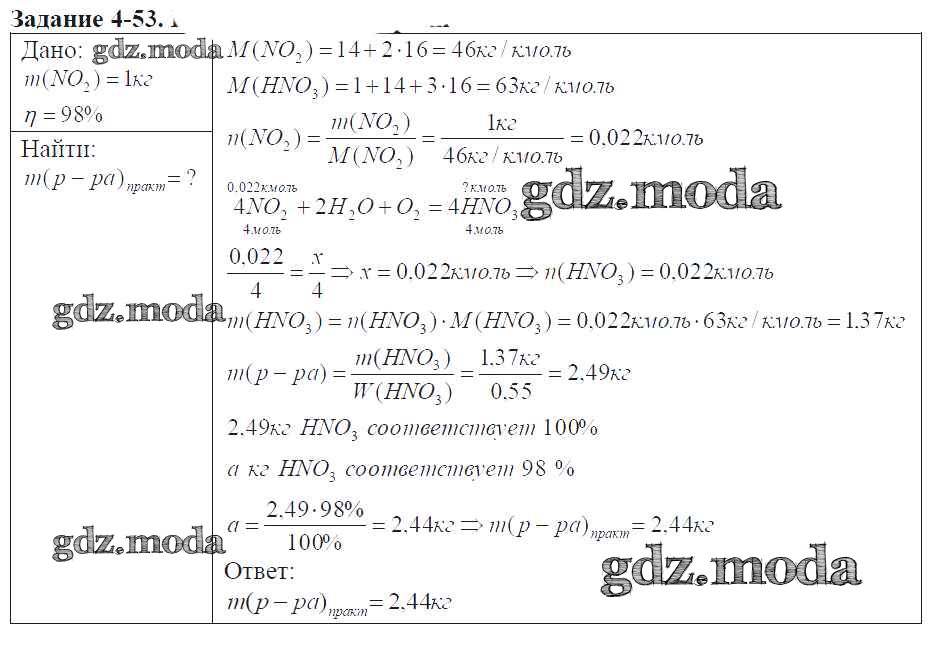 ГДЗ решение к заданию № 4-53 Химия 9 класс задачник Кузнецова Н.Е. Вентана-граф 2015 ФГОС бесплатно на гдз.мода!