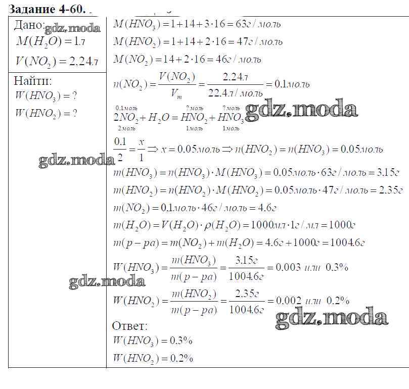 ГДЗ решение к заданию № 4-60 Химия 9 класс задачник Кузнецова Н.Е. Вентана-граф 2015 ФГОС бесплатно на гдз.мода!
