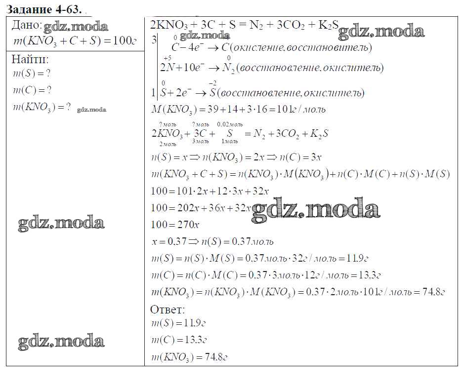 ГДЗ решение к заданию № 4-63 Химия 9 класс задачник Кузнецова Н.Е. Вентана-граф 2015 ФГОС бесплатно на гдз.мода!